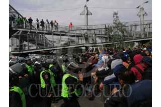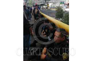 CIUDAD DE MÉXICO, 12NOVIEMBRE2019.- Policías Federales que rechazaron uniserse a la Guardia Nacional y están buscando que el gobierno los indemnice tras no aceptar ninguna oferta laboral propuesta por el gobierno federal se manifestaron en las inmediaciones del Aeropuerto Internacional de la Ciudad de México, en donde se enfrentaron con policías capitalinos quienes trataron de que no bloquearan las entradas, el saldo fue de al menos dos policías descalabrados. Los federales retuvieron a varios policías capitalinos para intercambiaron por compañeros que fueron detenidos en la trifulca. FOTO: ARMANDO MONROY /CUARTOSCURO.COM