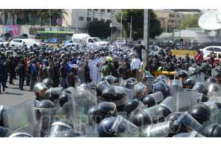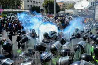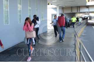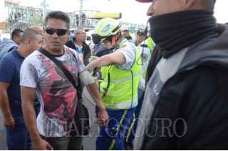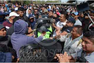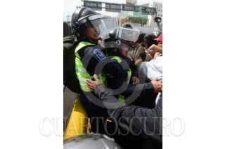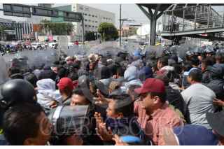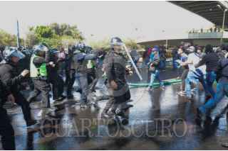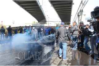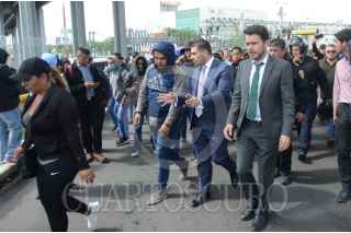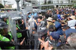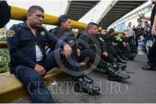 CIUDAD DE MÉXICO, 12NOVIEMBRE2019.- Policías Federales se manifestaron desde temprano en las inmediaciones de la Terminal 1 del Aeropuerto Internacional de la Ciudad de México "Benito Juárez", los inconformes se oponen a integrarse a la Guardia Nacional y piden se les indemnice ya que también han rechazado las otras ofertas laborales que el gobierno federal les ha ofrecido. Durante el día se suscitaron varios enfrentamientos, tanto federales como policías citadinos retuvieron a miembros de ambos lados que fueron liberados tras un diálogo entre los dirigentes de los federales y el titular de la SSC, Omar Harfuch. Cuando los inconformes intentaron bloquear los carriles centrales de Circuito Interior los elementos capitalinos los dispersaron con gas lacrimógeno, que volvió a desatar los empujones y gritos, al momento se encuentran replegados a un costado del aeropuerto. FOTO: ARMANDO MONROY /CUARTOSCURO.COM