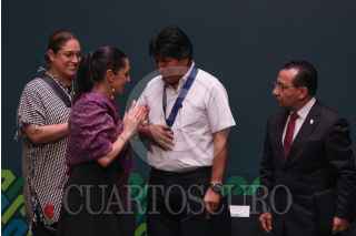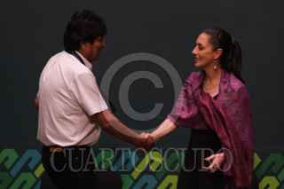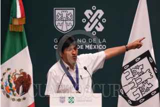 CIUDAD DE MÉXICO, 13NOVIEMBRE2019.- Claudia Sheinbaum, jefa de Gobierno, y Rafael Guerra Álvarez, presidente del Tribunal Superior de Justicia de la Ciudad de México, se despiden de Evo Morales, ex presidente de Bolivia, al terminar la ceremonia de la entrega de la distinción de "Huésped Distinguido". El acto se realizó en el patio del Antiguo Palacio del Ayuntamiento. FOTO: GRACIELA LÓPEZ /CUARTOSCURO.COM