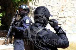 XALTIANGUIS, GUERRERO, 13NOVIEMBRE2019.- El fiscal general del estado de Guerrero, Jorge Zuriel de los Santos, encabezó el operativo conjunto de la Guardia Nacional, Marina, Policía Federal, Policía Estatal y Municipal, en la comunidad de Xaltianguis. En el operativo se catearon casas en donde se asegurando armas, chalecos antibalas, droga y se detuvieron a 11 personas pertenecientes al grupo armado de Los Dumbos. FOTO: CARLOS ALBERTO CARBAJAL /CUARTOSCURO.COM
