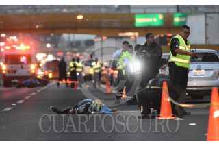 LOS REYES LA PAZ, ESTADO DE MÉXICO, 13NOVIEMBRE2019.- Un hombre perdió la vida al impactar su motocicleta en una camioneta a la altura del kilómetro 19 de la autopista Mexico-Puebla, en el municipio de Los Reyes, en el Estado de México. FOTO: CRISTIÁN HÉRNANDEZ /CUARTOSCURO.COM