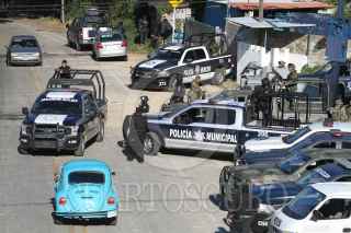 ACAPULCO, GUERRERO, 13NOVIEMBRE2019.- Elementos de seguridad municipal con los tres niveles de gobierno fueron desplegados la mañana de este miércoles en la comunidad de Xaltianguis, municipio de Acapulco, con el objetivo de montar un operativo conjunto de vigilancia, control, resguardo y ejecutar órdenes de aprehensión. En el cateo de casas lograron aseguran armas. En el despliegue, que inició alrededor de las 10 de la mañana, participaron aproximadamente 350 elementos de la Secretaría de Seguridad Pública (SSP) estatal, la Dirección general de Seguridad en Carreteras e instalaciones, la SSP municipal, la Secretaría de Marina, la Secretaría de la Defensa Nacional y la Guardia Nacional. FOTO: BERNANDINO HERNANDEZ /CUARTOSCURO.COM