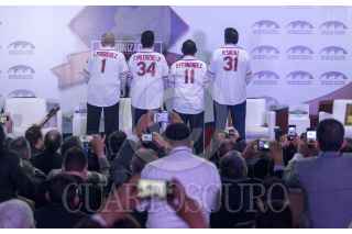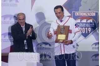 MONTERREY, NUEVO LEÓN, 13NOVIEMBRE2019.- El Salón de la Fama del Beisbol Mexicano recibió a Fernando "El Toro" Valenzuela, Daniel Fernández, Cuauhtémoc Rodríguez y Ricardo Sáenz, quienes fueron entronizados por su trayectoria en el beisbol mexicano. Al evento asistieron Alfredo Harp Helú, director del Salón de la Fama, Ana Gabriela Guevara, directora de la Comisión de Cultura Física y Deporte, el gobernador del estado de Nuevo León, Jaime Rodríguez y José Maiz, presidente del equipo Sultanes. FOTO: GABRIELA PÉREZ MONTIEL /CUARTOSCURO.COM