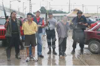 VILLAHERMOSA, TABASCO, 07OCTUBRE2005.- Los peligrosos homicidas a sueldo se registraron en la mesa de guardia del CRESET, con los nombres: Cecilio Arcos Laynes (D) de origen tabasqueño, Jorge Santiago (C) ex kaibil guatemalteco y Uriel Gonzalez Cruz, quienes privaron de la vida a Martìn Flores Torrico en un ajustes de cuentas ocurrido a plena luz del dìa en el parque central del municipio de Emiliano Zapata. FOTO: Marco Polo Guzmán/CUARTOSCURO.COM