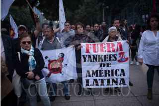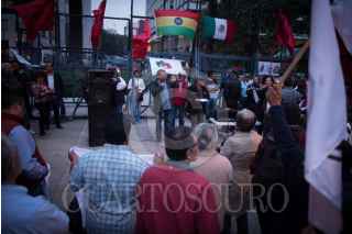 CIUDAD DE MÉXICO, 15NOVIEMBRE2019.- Distintas organizaciones sociales, entre ellas Frente Popular Francisco Villa y el Sindicato Mexicano de Electricistas, se reunieron afuera de Embajada de Estados Unidos para protestar en contra de la situación política que se vive en Bolivia. Participaron en el acto también Pablo Moctezuma Barragán, ex delegado de Azcapotzalco y el antropólogo Gilberto López y Rivas. FOTO: PEDRO ANZA /CUARTOSCURO.COM
