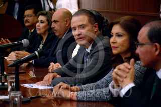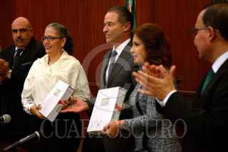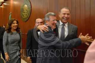 CULIACÁN, SINALOA, 15NOVIEMBRE2019.- El gobernador de Sinaloa, Quirino Ordaz Coppel, entregó su tercer informe de gobierno a la 63 legislatura. Los diputados analizarán el informe y determinarán qué información sobre diferentes aspectos de la administración pública tendrán que ser aclarados o ampliados por el gobierno estatal. El documento fue recibido por la diputada Graciela Domínguez, presidenta de la Junta de Coordinación Política del Congreso. FOTO: JUAN CARLOS CRUZ /CUARTOSCURO.COM