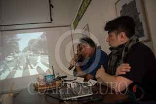 CIUDAD DE MÉXICO, 16NOVIEMBRE2019.- El músico especializado en la historia de la agrupación británica "The Beatles", Daniel Nájera, impartió, junto con el maestro en historia del arte y música, Fernando Ramírez, una conferencia en el Museo Archivo de la Fotografía. En la conferencia, que titularon "The Beatles a 50 años del Abbey Road", se habló sobre la historia y los pormenores que rodean la discografía de la agrupación sesentera; "no son un grupo de la tierra, son extraterrestres, otra galaxia musical", sentenció Fernando Ramírez. FOTO: PEDRO ANZA /CUARTOSCURO.COM