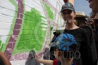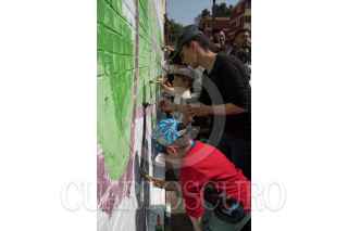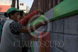 CIUDAD DE MÉXICO, 16NOVIEMBRE2019.- Claudia Sheinbaum Pardo, jefa de Gobierno encabezó la jornada “Sábado de Tequio”, con el propósito de recuperar los espacios públicos mediante trabajo comunitario. En la imagen, Sheinbaum pinta una barda junto a niños y niñas de la Unidad habitacional CTM III, lugar donde se realizó la jornada de Tequio, ubicada en avenida Santa Ana 24, Culhuacán alcaldía Coyoacán. FOTO: MAGDALENA MONTIEL/CUARTOSCURO.COM