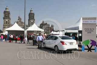 CIUDAD DE MÉXICO, 16NOVIEMBRE2019.- El Instituto Nacional Electoral (INE) participa en la Feria de la Inclusión 2019 que se celebra por primera vez en el país, con el objetivo de fortalecer la inclusión social de las personas con discapacidad. Durante la feria realizada en el Zócalo, el Instituto mostró a personas con discapacidad los servicios que brinda y las innovaciones que ha implementado en las elecciones para garantizar su participación y el ejercicio de sus derechos político-electorales en libertad. En el stand del INE se mostró el proceso para la credencialización en los módulos de atención ciudadana y los materiales electorales diseñados para garantizar el voto de las personas con discapacidad como la plantilla braille y la mampara especial. FOTO: INE /CUARTOSCURO.COM