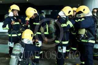CIUDAD DE MÉXICO, 17NOVIEMBRE2019.- Bomberos de distintos estados del país, así como de países del continente americano, participaron en la edición 2019 de los Juegos Latinoamericanos de Policías y Bomberos. Como prueba, las y los competidores tuvieron que recorrer los 51 pisos de la Torre Bancomer. FOTO: GALO CAÑAS /CUARTOSCURO.COM