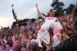 CIUDAD DE MÉXICO, 17NOVIEMBRE2019.- El dúo musical Sofi Tukker de Nueva York, conformado por Sophie Hawley-Weld y Tucker Halpern, tocaron sus pistas musicales en el escenario Doritos durante la Décima Edición del Festival Corona Capital, el cual se lleva a cabo en el Autódromo Hermanos Rodríguez. FOTO: GRACIELA LÓPEZ /CUARTOSCURO.COM