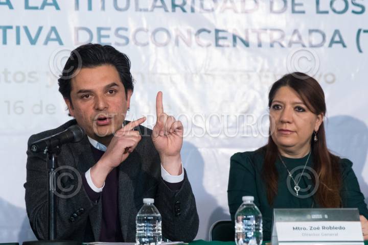 CIUDAD DE MÉXICO, 18NOVIEMBRE2019.- David Razú Aznar, director de Vinculación Institucional y Evaluación de Delegaciones; Zoé Robledo, director del IMSS, y Claudia Laura Vázquez Espinoza, directora de Innovación y desarrollo Tecnológico; hablaron del concurso de oposición para la titularidad de los órganos de operación administrativa desconcentrada, que se realizó este fin de semana. FOTO: MOISÉS PABLO /CUARTOSCURO.COM