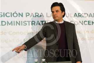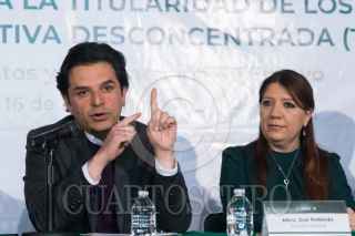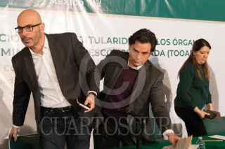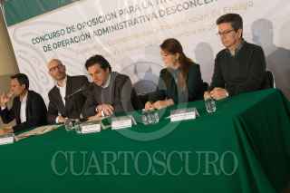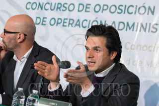 CIUDAD DE MÉXICO, 18NOVIEMBRE2019.- David Razú Aznar, director de Vinculación Institucional y Evaluación de Delegaciones; Zoé Robledo, director del IMSS, y Claudia Laura Vázquez Espinoza, directora de Innovación y desarrollo Tecnológico; hablaron del concurso de oposición para la titularidad de los órganos de operación administrativa desconcentrada, que se realizó este fin de semana. FOTO: MOISÉS PABLO /CUARTOSCURO.COM