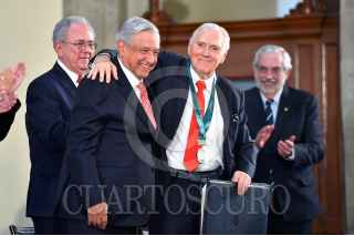 CIUDAD DE MÉXICO, 18NOVIEMBRE2019.- Andrés Manuel López Obrador, Presidente de México, entregó los Premios Nacionales de Ingeniería y Arquitectura en Palacio Nacional. Entre los galardonados estuvieron el Arquitecto Joaquín Álvarez Ordóñez. FOTO: PRESIDENCIA /CUARTOSCURO.COM