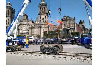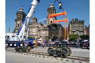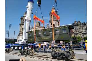 CIUDAD DE MÉXICO, 18NOVIEMBRE2019.- Trabajadores tuvieron que realizar varias maniobras para colocar la locomotora "Petra" que será parte de la ambientación que el gobierno federal esta llevando a cabo en el marco de las festividades del 109 Aniversario de la Revolución Mexicana. FOTO: ARMANDO MONROY /CUARTOSCURO.COM