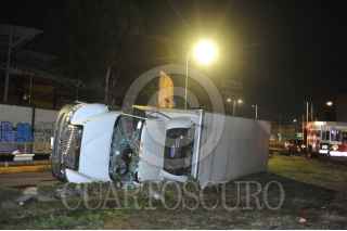 CIUDAD DE MÉXICO., 19NOVIEMBRE2019.- Camión tipo torton cargado con productos perecederos, volcó al perder el control al tomar una curva a toda velocidad en Churubusco a la altura de calle Oriente 33 de la colonia Peñón de los Baños. Tres personas resultaron lesionadas en este accidente. FOTO: LUIS CARBAYO /CUARTOSCURO.COM