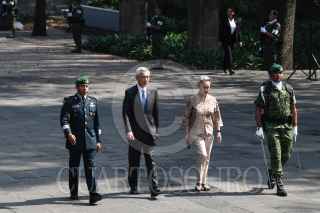 CIUDAD DE MÉXICO, 19NOVIEMBRE2019.- Lee Hsien Loong, ministro de la República de Singapur a México, acompañado de su esposa Lee Ho-Ching, durante su llegada la Ceremonia de depóstio de ofrenda floral con motivo de su visita al país. El acto se realizó en el Monumento a los niños Héroes. FOTO: GRACIELA LÓPEZ /CUARTOSCURO.COM