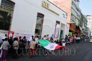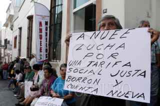 CUERNAVACA, MORELOS, 19NOVIEMBRE2019.- Protesta de la Asamblea Nacional de Usuarios de Energía Eléctrica en un cajero de la Comisión Federal de Electricidad ubicado en el centro de la ciudad. Los ciudadanos exigen tarifas justas y no más “recibos locos” donde se les cobra miles de pesos por la energía eléctrica que consumen. FOTO: MARGARITO PÉREZ RETANA /CUARTOSCURO.COM