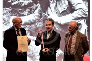 CIUDAD DE MÉXICO, 19NOVIEMBRE2019.- Eduardo Matos Moctezuma, arqueólogo, investigador e historiador, fue investido como Miembro Emérito del Seminario de Cultura Mexicana (SCM). Durante el Homenaje Felipe leal, presidente de la mesa directiva del SCM, le otorgó una medalla , diploma y distintivo-botón FOTO: INAH /CUARTOSCURO.COM