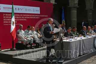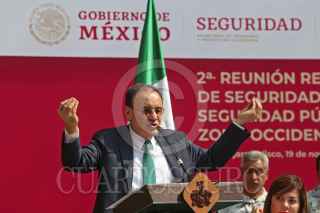 GUADALAJARA, JALISCO, 19NOVIEMBRE2019.- Alfonso Durazo Montaño Secretario de Seguridad y Protección Ciudadana del Gobierno Federal, Enrique Alfaro Ramírez Gobernador del Estado y demás autoridades militares, estatales y municipales, encabezaron la Segunda Reunión Regional de Conferencias Nacionales de Secretarios de Seguridad Publica , del Sistema Penitenciario y Seguridad Publica Municipal Zona Occidente, esto en evento que se llevo a cabo en Palacio de Gobierno. FOTO: FERNANDO CARRANZA GARCIA / CUARTOSCURO.COM