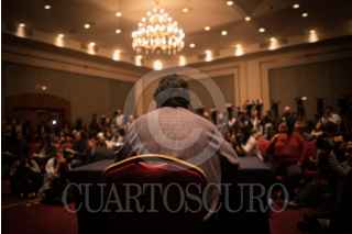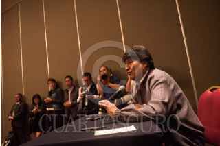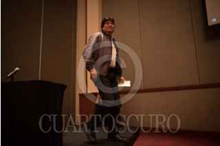 CIUDAD DE MÉXICO, 20NOVIEMBRE2019.- Evo Morales, quien renunció a la Presidencia de Bolivia ante la presión que los grupos de oposición en el país sudamericano ejercían sobre su mandato, ofreció una conferencia de prensa en un hotel ubicado en avenida Revolución, en donde habló sobre la situación de conflicto social que vive su patria. FOTO: PEDRO ANZA /CUARTOSCURO.COM