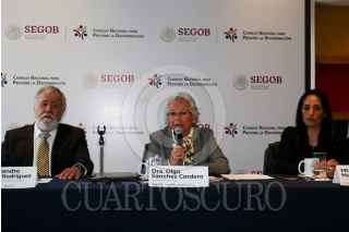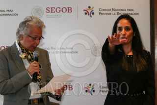 CIUDAD DE MÉXICO, 20NOVIEMBRE2019.- Alejandro Encinas, subsecretario de Derechos Humanos de la Segob; Olga Sánchez Cordero, secretaria de Gobernación, y Mónica Maccise Duayhe, nueva titular del Consejo Nacional Para Prevenir la Discriminación (CONAPRED), durante el cambio de presidencia de dicha dependencia. FOTO: GALO CAÑAS /CUARTOSCURO.COM