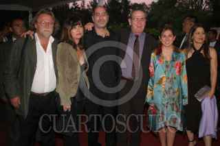 MORELIA, MICHOACAN 08OCTUBRE2005.- El productor George Fitzgerald, la esposa del guionista Guillermo Arriaga, el guionista, Tommy Lee Jones, su esposa e hija llegan a la alfombra roja de la premiere "Los tres entierros de Melquiades Estrada" con la que dio inicio el festival de cine internacional de Morelia. FOTO: Miguel Dimayuga/CUARTOSCURO.COM