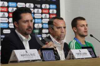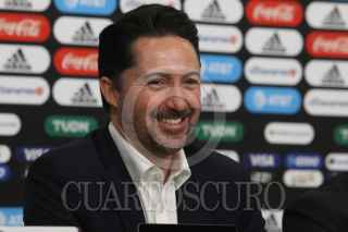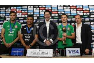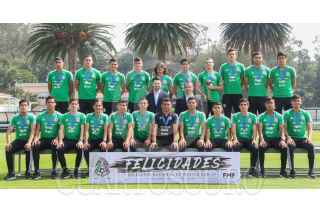 CIUDAD DE MÉXICO, 20NOVIEMBRE2019.- Marco Ruiz, director técnico Selección Sub-17, Yon de Luisa, presidente de la Federación Mexicana de Fútbol, Gerardo Torrado, director general deportivo y el equipo de la Sección Mexicana Sub-17 Subcampeona del Mundial de Brasil 2019, durante la toma de la fotografía oficial. FOTO: ROGELIO MORALES /CUARTOSCURO.COM