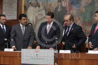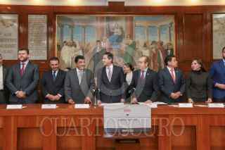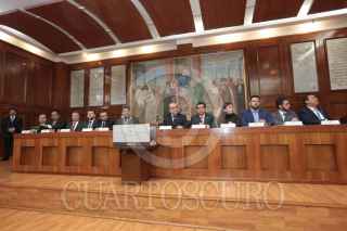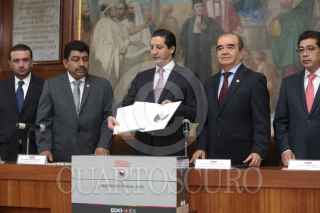 TOLUCA, ESTADO DE MÉXICO, 21NOVIEMBRE2019.- Rodrigo Jarque Lira, Secretario de Finanzas del Estado de México entregó la propuesta de Paquete Fiscal 2020 a los integrantes de la LX Legislatura Local, estimando un egreso total de 302 millones de pesos. FOTO: CRISANTA ESPINOSA AGUILAR /CUARTOSCURO.COM