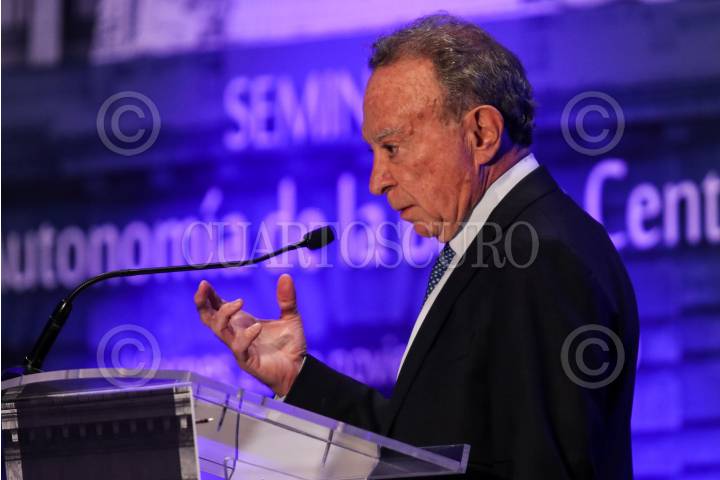 CIUDAD DE MÉXICO, 22NOVIEMBRE2019.- Agustín Carstens, ex gobernador del Banco de México (2010-2017), durante el Seminario “La Importancia de la Autonomía de la Banca Central: Retos y Perspectivas” con motivo del 25 aniversario de la Autonomía del Banco de México. FOTO: GALO CAÑAS /CUARTOSCURO.COM