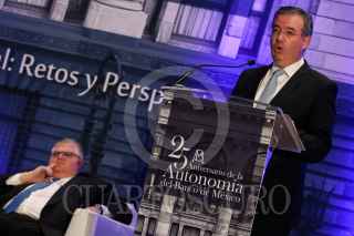 CIUDAD DE MÉXICO, 22NOVIEMBRE2019.- Agustín Carstens, ex gobernador del Banco de México (2010-2017), durante el Seminario “La Importancia de la Autonomía de la Banca Central: Retos y Perspectivas” con motivo del 25 aniversario de la Autonomía del Banco de México. FOTO: GALO CAÑAS /CUARTOSCURO.COM