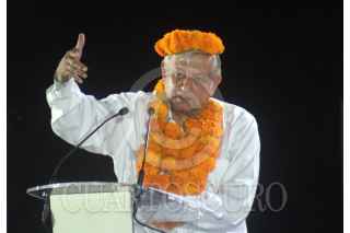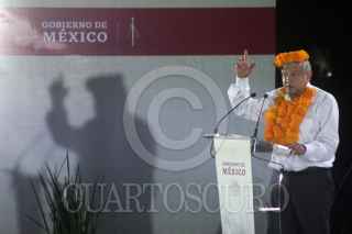 COATETELCO, MORELOS, 22NOVIEMBRE2019.- El presidente de la República, Andrés Manuel López Obrador, durante el “Diálogo con el Pueblo Náhuatl” realizado esta tarde en este municipio indígena de reciente creación. El mandatario federal respaldó al gobernador, Cuauhtémoc Blanco con el siguiente mensaje: “Llevamos muy buena relación con el gobernador, él no está solo, tiene el respaldo del gobierno federal, del presidente, digo esto porque hay veces que son muy abusivos, ventajosos”. Opositores a las concesiones mineras en el estado protestaron fuera del evento, así como familiares de reos del penal de Atlacholoaya, quienes exigen poder comunicarse con sus familiares. FOTO: MARGARITO PÉREZ RETANA /CUARTOSCURO.COM