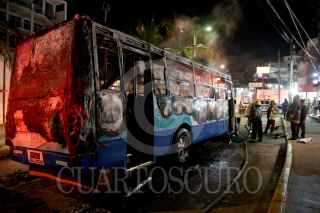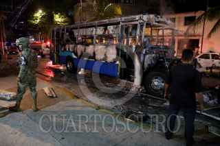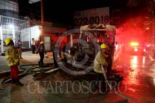 ACAPULCO, GUERRERO, 22NOVIEMBRE2019.-Hombres armados incendiaron esta noche un camión urbano del transporte publico sobre la avenida Costera Miguel Alemán de Acapulco, este es el segundo camión incendiado en la avenida costera en un mes después de que transportistas denunciaran extorsiones del crimen organizado. FOTO: CARLOS ALBERTO CARBAJAL /CUARTOSCURO.COM