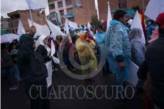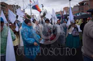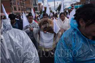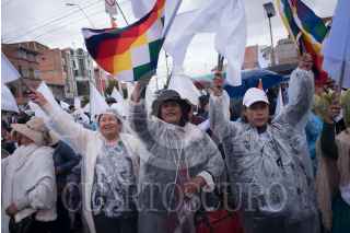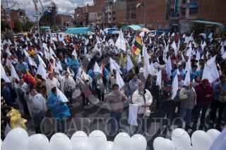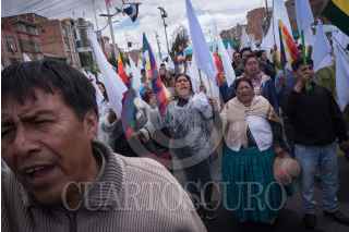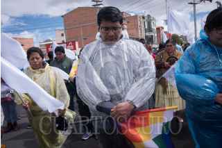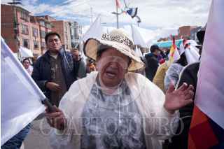 LA PAZ, BOLIVIA, 23NOVIEMBRE2019.- Se realizó una concentración en la explanada del Obelisco de la ciudad de "El Alto", la cual colinda con la ciudad capital del país. La reunión, que congregó alrededor de 100 o 200 personas, se denominó "Marcha por La Paz"; quienes hicieron uso del estrado y los micrófonos aseguraron que se trataba de un acto cívico y a voluntad; estuvieron presentes organizaciones como el Consejo Nacional de Ayllus y Markas del Qullasuy y el Comité Cívico Pro Departamento La Paz. Los no más de doscientos asistentes entonaron plegarias al son de un pastor que hablaba dese la tarima con enjundia sobre el papel de Cristo y la oración en la huída del ex presidente Evo Morales. Lo anterior en un contexto en el cual el senado de Bolivia aprobó por unanimidad que se convocará a nuevas elecciones. FOTO: PEDRO ANZA /CUARTOSCURO.COM