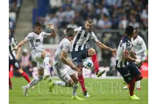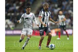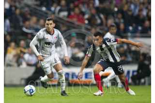 MONTERREY, NUEVO LEÓN, 23NOVIEMBRE2019.- Carlos Rodríguez del equipo de los Rayados del Monterrey, se disputa el balón con Edgar Saldívar del equipo de Atlas en el estadio BBVA Bancomer, partido correspondiente a la jornada 19 de la Liga MX, Apertura 2019. Marcador Final: Monterrey: 2 - Atlas: 0 FOTO: GABRIELA PÉREZ MONTIEL /CUARTOSCURO.COM