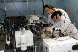 MEXICO, D.F. 09OCTBRE2005.- Con el equipo de vanguardia que se utiliza en el nuevo Laboratorio de Espectroscopia Láser del Instituto de Química de la UNAM se pueden tomar fotografías a las reacciones químicas. Aquí las estudiantes de maestría Mariana Esquivel y Jimena Saucedo. FOTO: UNAM/CUARTOSCURO.COM