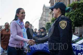 CIUDAD DE MÉXICO, 24NOVIEMBRE2019.- Las autoridades del Gobierno de la Ciudad presentaron las Unidades de Género de la SSC, en el Antiguo Palacio de Ayuntamiento, así como las patrullas que formarán parte de dicha agrupación, para la atención de casos de violencia de género contra mujeres de la Ciudad. Las unidades serán operadas por mujeres policías y estarán ubicadas en Arcos de Belém. FOTO: MAGDALENA MONTIEL / CUARTOSCURO.COM