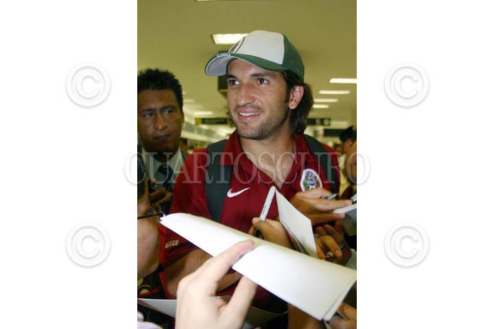 MEXICO, D.F., 13OCTUBRE2005.- Guillermo Franco, delantero de la selección, arribó en el aeropuerto internacional de la Ciudad de México luego de la derrota que ayer sufrieran ante Trinidad y Tobago en el hexagonal rumbo al mundial. FOTO: Juan Tomás López/CUARTOSCURO.COM