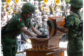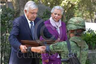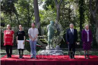CIUDAD DE MÉXICO, 25NOVIEMBRE2019.- El Presidente de México, Andrés Manuel López Obrador, encabezó la ceremonia de Inhumación de Valentín Campa Salazar en la Rotonda de las Personas Ilustres en el Panteón Dolores. Lo acompañaron en el protocolo los nietos del fundador del Partido Comunista de México, Manuela Álvarez Campa y Santiago Álvarez Campa, además de la Secretaria de Gobernación, Olga Sánchez Cordero. FOTO: PRESIDENCIA /CUARTOSCURO.COM