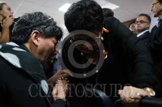 CIUDAD DE MÉXICO, 25NOVIEMBRE2019.- La madre de Mariela Vanessa Díaz Valverde, quién desapareció el pasado 27 de abril del 2018 en Iztapalapa, y Ernestina Godoy, procuradora de Justicia de la capital, conversaron al termino de la inauguración del Memorial para Lesvy Berlín Rivera Osorio y las víctimas del feminicidio. El pasado 10 de septiembre comenzaron las audiencias para dictar sentencia a Jorge Luis González Hernández, quién estranguló con un cable de teléfono enredado en el cuello a Lesvy la noche del 3 de mayo del 2017. El 11 de octubre, el feminicida González Hernández, fue declarado culpable de feminicidio agravado y fue sentenciado a 45 años de prisión y se le condenó indemnización por 377 mil 450 pesos, además del pago de gastos funerarios por el monto de 47 mil 957 pesos. El acto se realizó en las instalaciones de la Procuraduría General de la Justicia de la ciudad. FOTO: GRACIELA LÓPEZ /CUARTOSCURO.COM