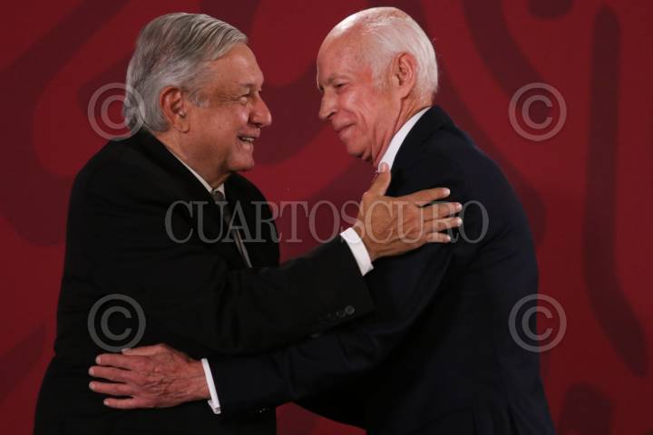 CIUDAD DE MÉXICO, 26NOVIEMBRE2019.- Marcelo Ebrard, secretario de Relaciones Exteriores, durante la conferencia matutina donde se presentó el proyecto de inversiones de la iniciativa privada con el gobierno federal pactado para 2020, donde expuso el avance entorno a la firma del Tratado de libre Comercio entre Canadá, Estados Unidos y México. FOTO: GALO CAÑAS /CUARTOSCURO.COM
