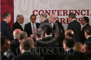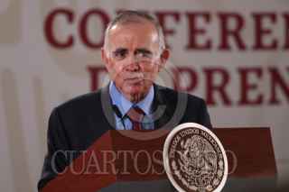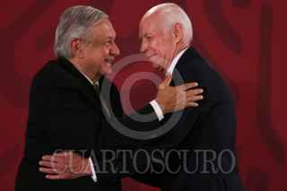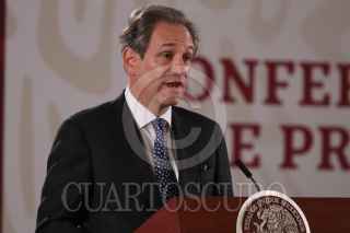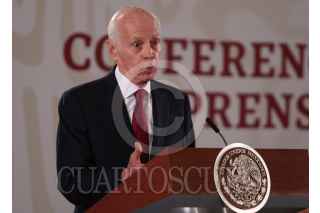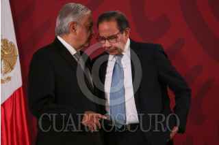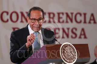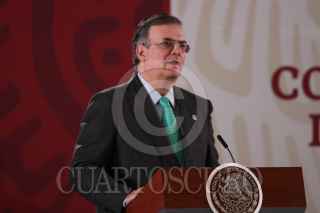 CIUDAD DE MÉXICO, 26NOVIEMBRE2019.- Marcelo Ebrard, secretario de Relaciones Exteriores, durante la conferencia matutina donde se presentó el proyecto de inversiones de la iniciativa privada con el gobierno federal pactado para 2020, donde expuso el avance entorno a la firma del Tratado de libre Comercio entre Canadá, Estados Unidos y México. FOTO: GALO CAÑAS /CUARTOSCURO.COM