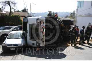 CIUDAD DE MÉXICO, 26NOVIEMBRE.- Un camión que transportaba tierra volcó por la sobrecarga de peso, impactando a dos vehículos en movimiento y uno más estacionado, al lugar acudieron elementos del cuerpo heroico de bomberos y policías capitalinos, esto en la colonia el Rosal de la alcaldía Magdalena Contreras. Cabe mencionar que no se reportaron personas heridas. FOTO: ROGELIO MORALES /CUARTOSCURO.COM