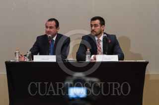 CIUDAD DE MÉXICO, 26NOVIEMBRE2019.- Luis Alonso Echegaray y Victor Francisco Beltrán García, abogados de Rubén Oseguera González "El Menchito", ofrecieron conferencia de prensa en un hotel en Polanco, para dar detalles del seguimiento del proceso jurídico de Oseguera. FOTO: ANDREA MURCIA /CUARTOSCURO.COM