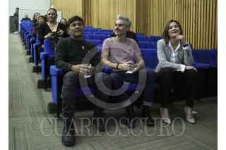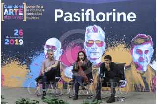 CIUDAD DE MÉXICO, 26NOVIEMBRE.- Miembros de la banda la Gusana Ciega y representante de Cuando el Arte Alza la Voz, durante la presentación del vídeo musical “Pasiflorine”, el cual aborda el tema de la violencia de género de dicha banda, esto en el marco del Día Internacional de la Eliminación de la Violencia contra las Mujeres, en el auditorio del instituto. FOTO: ROGELIO MORALES /CUARTOSCURO.COM
