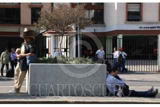 CIUDAD DE MÉXICO, 27NOVIEMBRE.- Vendedor de sombreros descasa recargado en una maceta a su espalda otro duerme sentado abrazando su mochila, esto en Avenida Universidad durante el bloqueo por trabajadores de la Secretaría de Educación Publica. FOTO: ROGELIO MORALES /CUARTOSCURO.COM