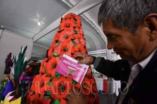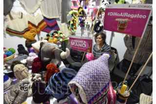 TOLUCA, ESTADO DE MÉXICO, 28NOVIEMBRE2019.- Durante cuatro días 300 artesanos del Estado de México, y estados invitados como Chiapas, Yucatán, Hidalgo, Tlaxcala y Michoacan y presencia de países como Perú, Ecuador, Colombia y Nepal exhibirán una diversidad de artesanías en la Plaza de los Mártires en el marco del Encuentro Internacional para el Mundo “Raíces y Costumbres”; juguetes, joyería, prendas de vestir, tapetes, cartonería, metalistería, son algunas de las cosas que se pueden encontrar, en cada local se pueden encontrar banderines en donde se invita a los visitantes a consumir productos locales y sobre todo a no regatear en trabajo de los artesanos. FOTO: CRISANTA ESPINOSA AGUILAR /CUARTOSCURO.COM