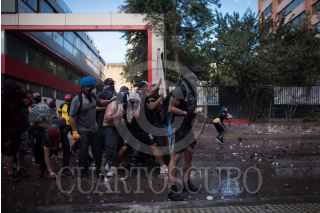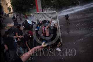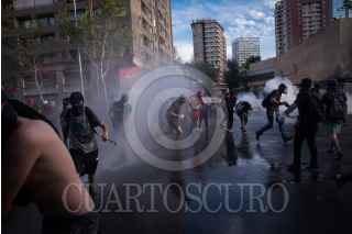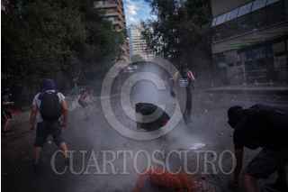 SANTIAGO, CHILE, 28NOVIEMBRE2019.- A 40 días de que inició el estallido social en Chile, a causa del alza en las tarifas del metro, las protestas continúan en la capital del país. El descontento social que inició con movilizaciones estudiantiles se generalizó reivindicando otras problemáticas sociales. Cada día por la tarde, en las inmediaciones de la Plaza Italia, jóvenes se enfrentan con los cuerpos policiaco llamados Carabineros. FOTO: PEDRO ANZA /CUARTOSCURO.COM