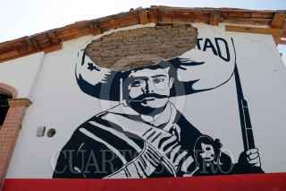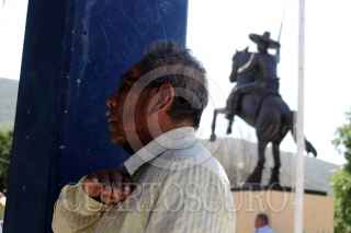 HUEHUETLÁN EL CHICO, PUEBLA, 28NOVIEMBRE2019.- Este día se conmemoro el 108 aniversario de la promulgación del Plan de Ayala en la comunidad de Ayoxuxtla en la mixteca poblana. En la imagen la plaza central del poblado se refleja en el ojo de un caballo. FOTO: MARGARITO PÉREZ RETANA /CUARTOSCURO.COM