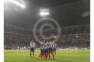 MONTERREY, NUEVO LEÓN, 28NOVIEMBRE2019.- Jugadores del equipo de los Rayados del Monterrey, celebran el gol, ante el equipo de Santos en el estadio BBVA Bancomer, partido correspondiente a cuartos de final en la Liguilla, Apertura 2019. Marcador Final: Monterrey: 5 - Santos: 2 FOTO: GABRIELA PÉREZ MONTIEL /CUARTOSCURO.COM